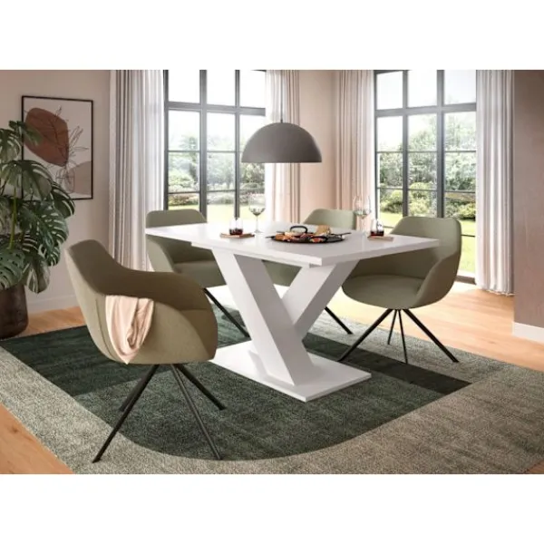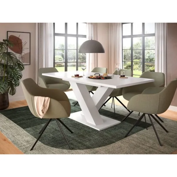 Förvandla din matplats med rootz utdragbara matbord, en perfekt blandning av funktionalitet och stil. Dess trendiga x-ben-ram och vit imitation avslutar sofistikering, medan den sömlösa förlängningen från 150 cm till 190 cm rymmer alla dina värdbehov. Tillverkad från premiumchipboard garanterar denna tabell långvarig hållbarhet och enkelt underhåll, vilket gör det till ett idealiskt centrum för din matplats.