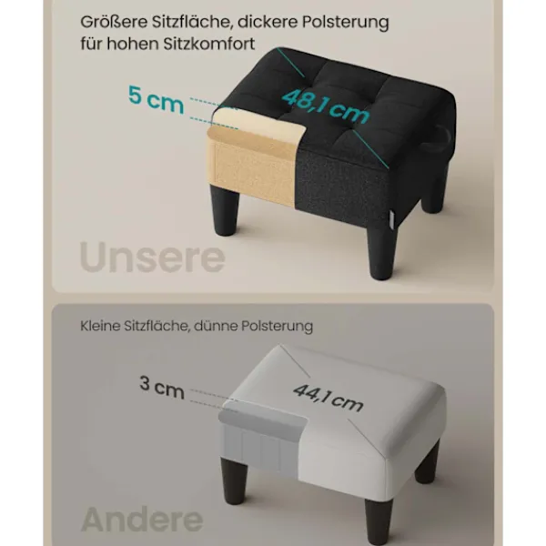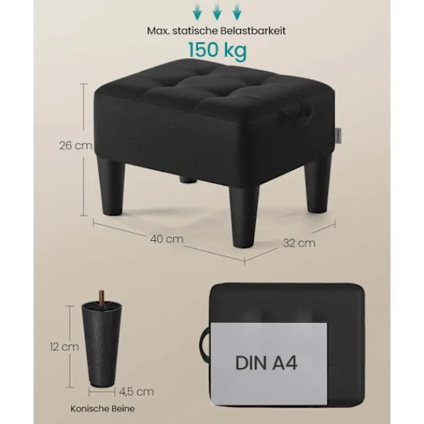 Denna rootz -svarta sätespall är utformad med överlägsen faux linne, skum och MDF för hållbarhet och komfort. Dess eleganta bläck svarta färg ger en touch av sofistikering till alla utrymmen, medan dess praktiska gör det till ett mångsidigt val för olika användningsområden, från ett snyggt fotstöd till extra sittplatser.