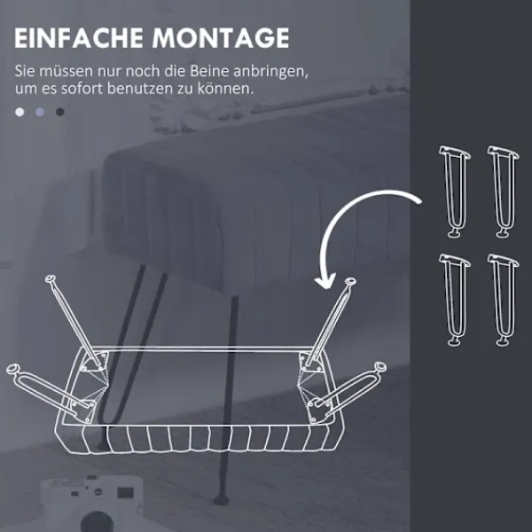 Elegant design: Utstrålar charmig elegans med quiltad sits och avsmalnande metallfötter