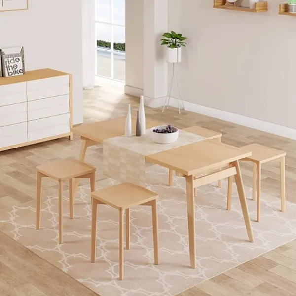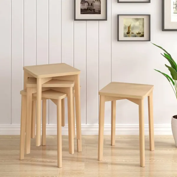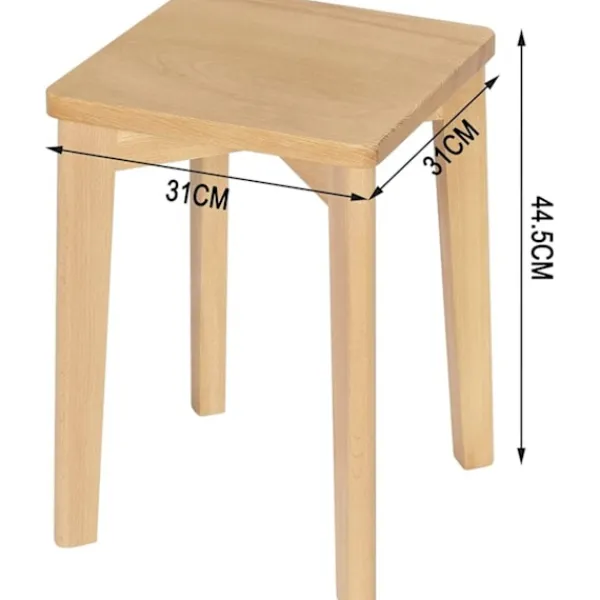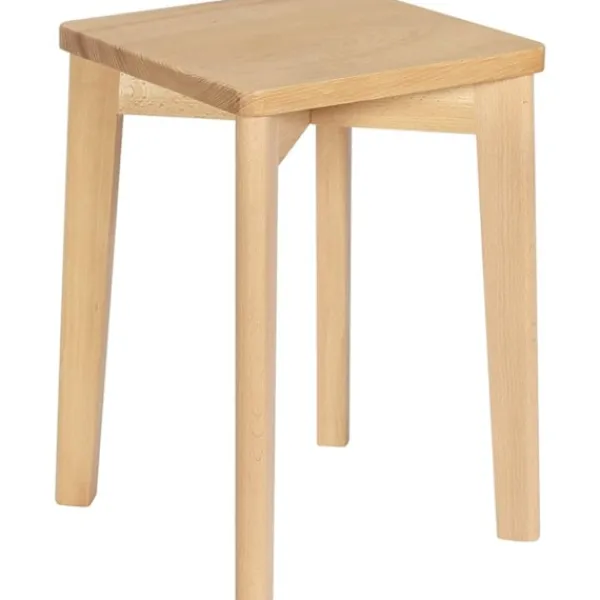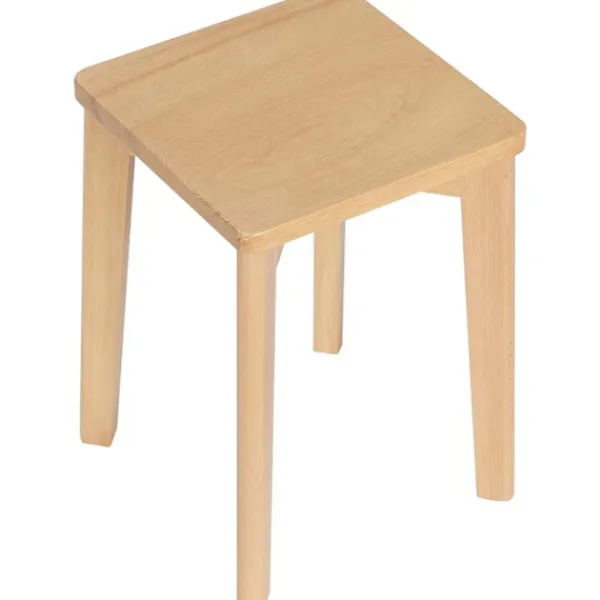 Tillverkad av lackat bokträ, denna matpall är naturlig, robust och har en lastkapacitet på 120 kg. Idealisk för små utrymmen.