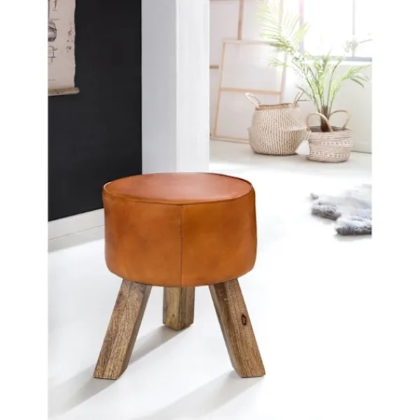 Design: Rootz Stool är en rund pall i trendig lantlig stil. Pall/ottoman är modern, tack vare sitsen i äkta läder. Pallen har tre massiva träben för ett robust stativ.