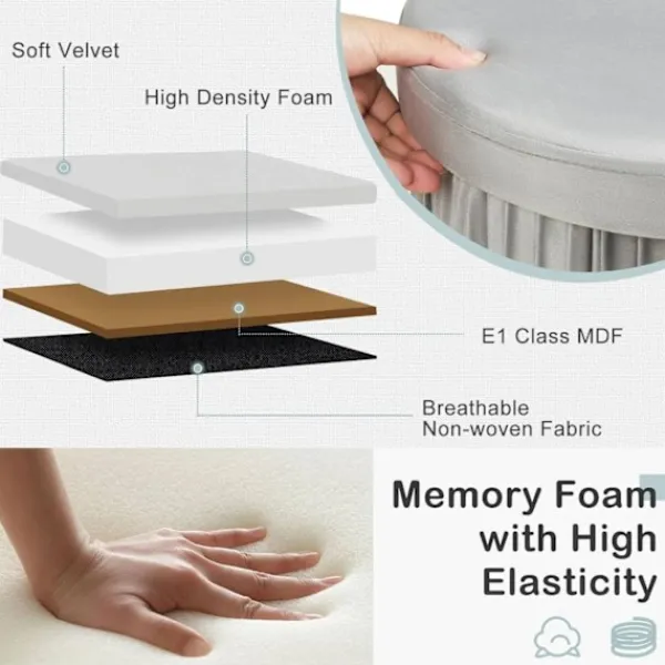 Mjuk och robust: Silkeslen sammetsöverdrag, elastisk skumstoppning och MDF-ram säkerställer hållbarhet och komfort.