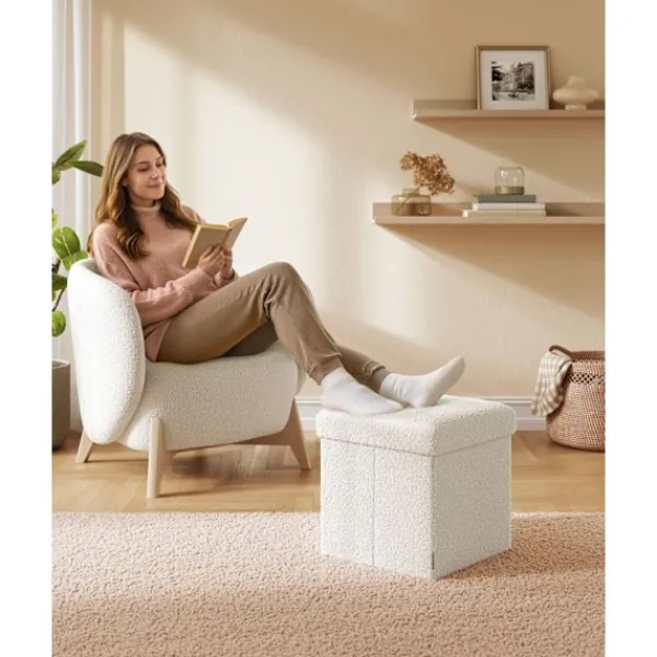 Rootz -pallen kombinerar elegant design med praktiska, med ett rymligt lagringsutrymme på 43 liter. Denna vita pall är utformad från hållbar MDF och klädd med fleece och ger komfort med sitt 25D mycket elastiska skum, vilket gör det till ett chic men funktionellt tillskott till alla rum.