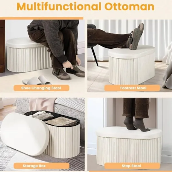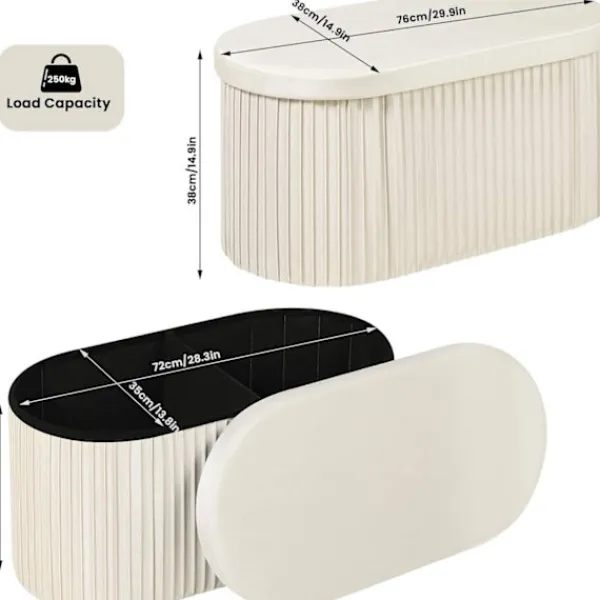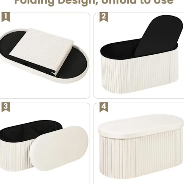 Rootz Storage Ottoman Bench är täckt med hudvänlig sammet, har ett stort 76L förvaringsfack, vikbar design och multifunktionell användning.