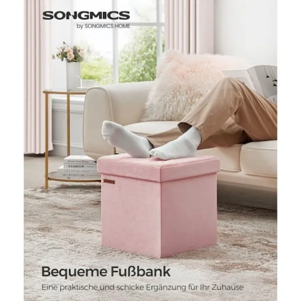 Förbättra din heminredning med denna ottomans pastellrosa sammetsfinish. Den fungerar inte bara som en förvaringsenhet utan också som ett mjukt sittalternativ som blandar skönhet med funktionalitet.