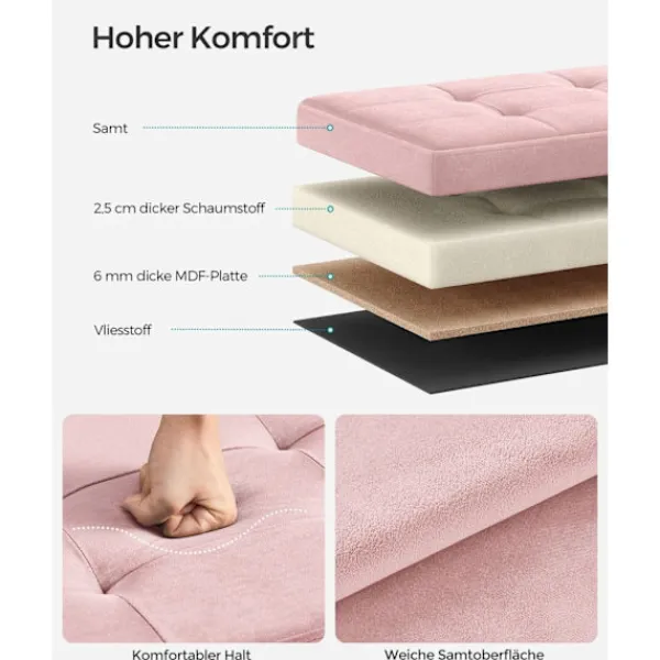 Konstruerad av högkvalitativ MDF och täckt med mjuk sammet, tål denna ottoman en maximal statisk belastning på 300 kg, vilket gör den till ett pålitligt och långvarigt tillskott till din möbelsamling.
