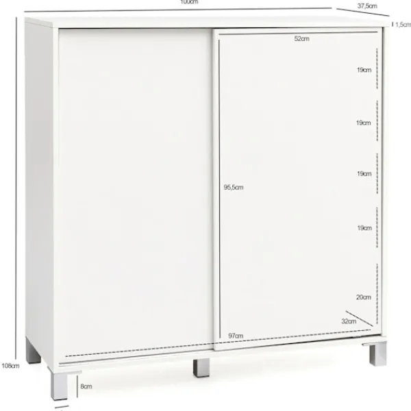 - Innermått per fack (BxHxD): 97 x 19 x 32 cm