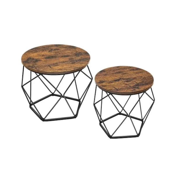 Höj ditt vardagsrum med The Rootz Vintage brun-svart sidobordsset. Denna uppsättning är tillverkad av högkvalitativ spånskiva och stål och innehåller ett stort bord perfekt för inredning och ett mindre bord för mångsidig användning.
