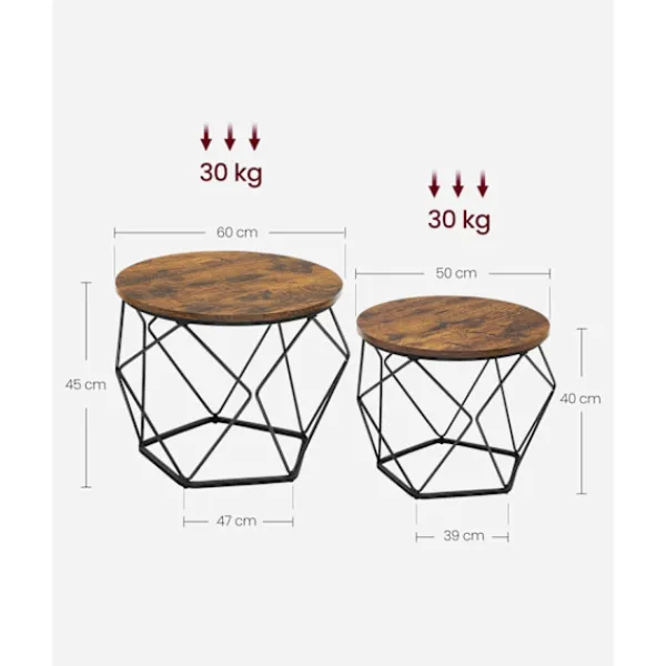 - Mått: Stort bord: 60 cm d, 45 cm H, litet bord: 50 cm d, 40 cm H