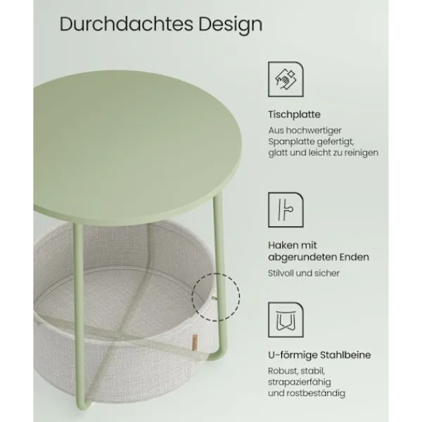 - Mått: Sidobord: 45 x 50 cm (Ø x H), tygkorg: 39,6 x 18,2 cm (Ø x H)
