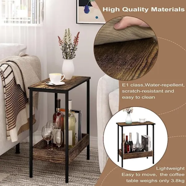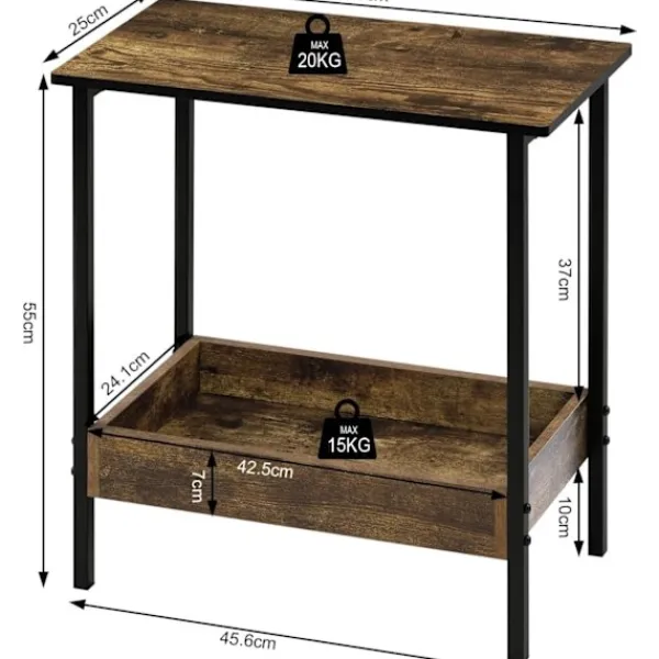 Tålig: Tillverkad av E1-trämaterial och rostsäker metallram, med en lastkapacitet på 20 kg på den översta hyllan och 15 kg på den nedre hyllan.