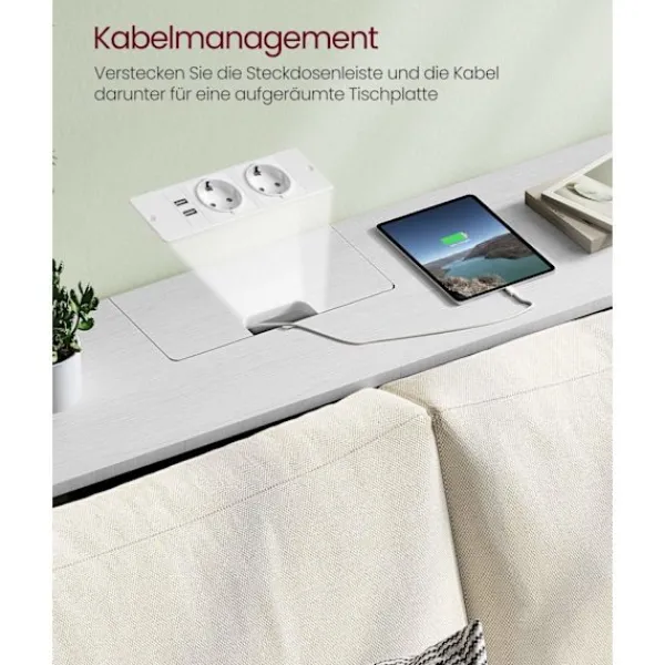 Utrustad med en inbyggd grenuttag gör detta sidobord att du enkelt kan ladda enheter, hålla ordning på kablarna och hålla utrymmet fritt från röran.
