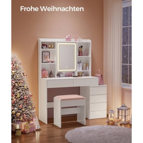 Förbättra din dagliga skönhetsrutin med detta moderna sminkbord med inbyggd LED-belysning.