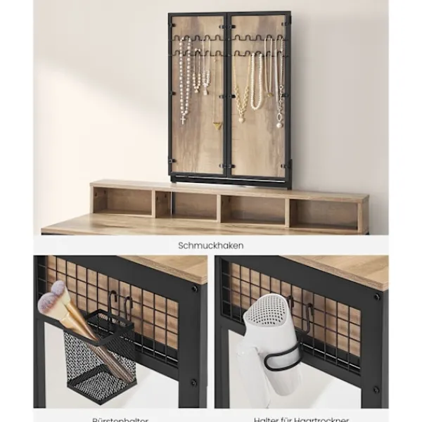 Rootz eleganta sminkbordsset med spegel och pall i brun-svart ek