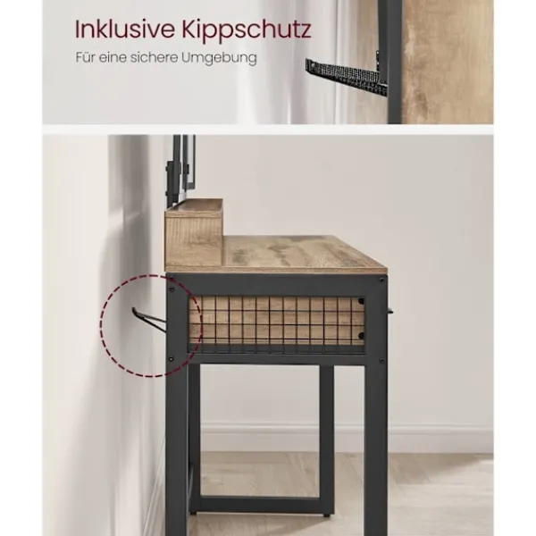 Stabil konstruktion: Slitstark spånskiva, stålram och robust glasspegel