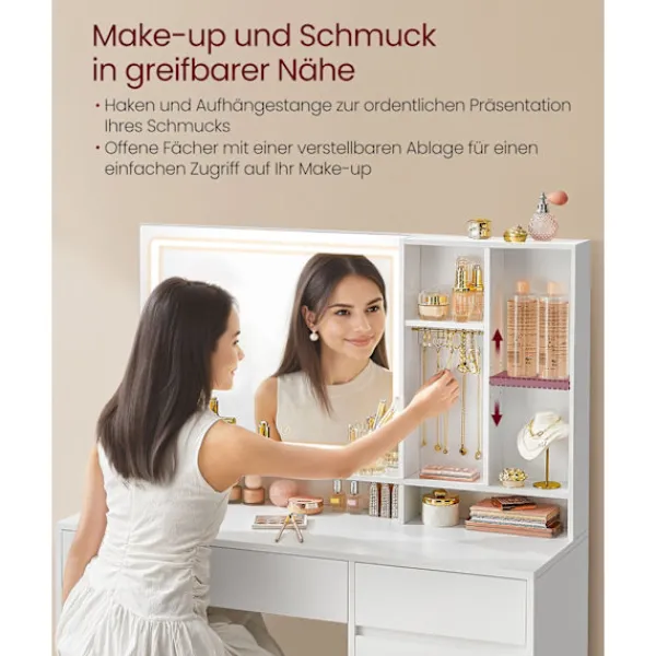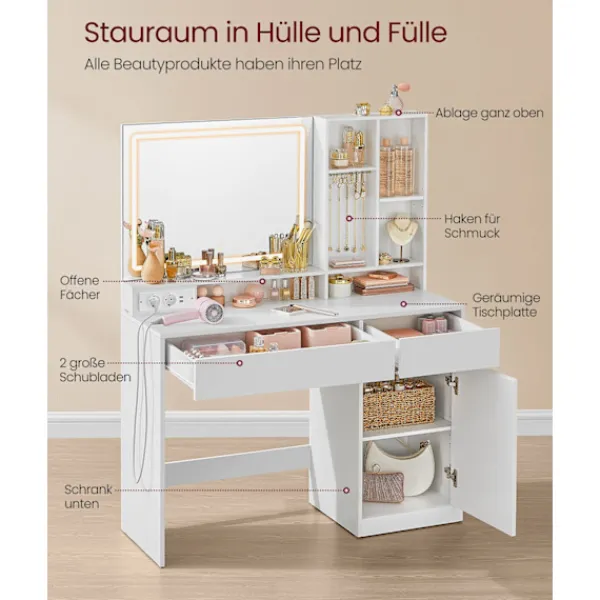 gott om lagring: har rymliga lådor för organiserad förvaring av kosmetik och tillbehör.