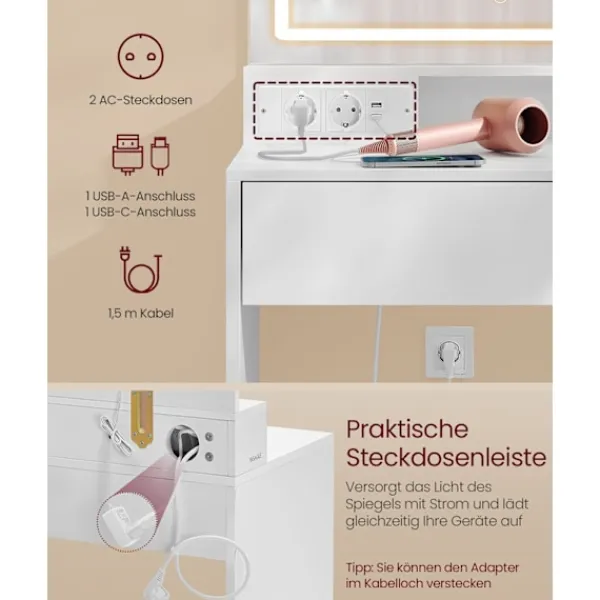 Rotz traditionella tabell med LED -belysning kombinerar elegans och användbarhet. Detta vackert utformade toalettbord har gott om förvaringsutrymme och humörförbättrande LED-lampor, vilket gör det till ett praktiskt tillägg till ditt sovrum eller omklädningsområde.