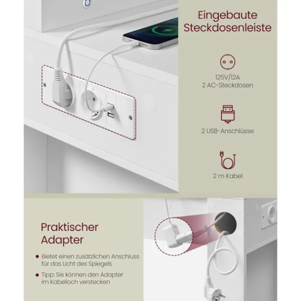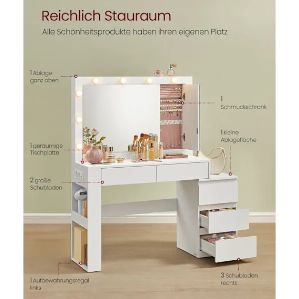 Rootz White Madaditional Table med LED -belysning och spegel för eleganta utrymmen