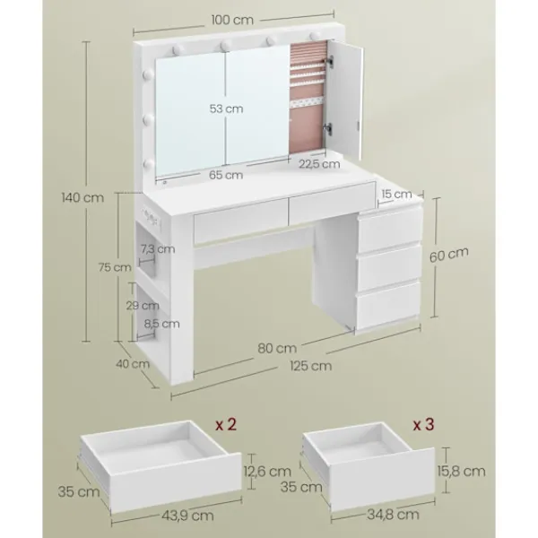 - 1 x toalettbord med spegel och belysning