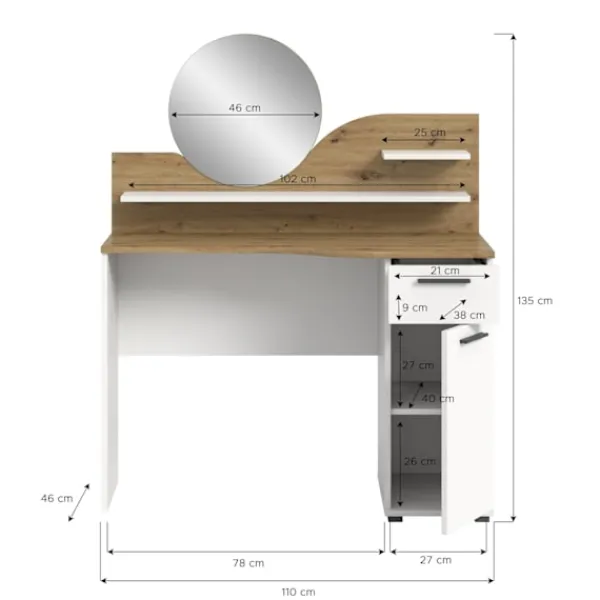 Förbättra din fåfänga installation med Rootz Living Vanity toalettbord, med en systematisk design med 1 låda, 1 dörr, 2 hyllor, 1 hylla och en stor spegelyta. Dess tidlösa och moderna design erbjuder mångsidighet i att kombinera med olika stilar.