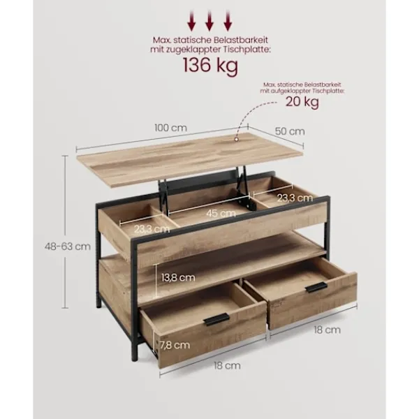 ROOTZ justerbart soffbord med lådor och offnem -fack – perfekt för varje vardagsrum