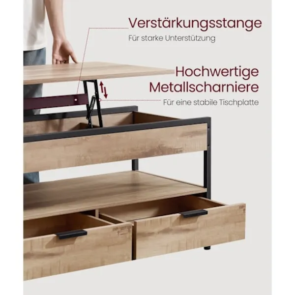 Rotz justerbara soffbord är utformat för att kombinera stil och funktionalitet. Med lådor och ett offnem -fack kompletterar detta anpassningsbara bord alla dekor. Tillverkad med slitstarka träflisar och stål, det är perfekt för vardagsbruk genom att erbjuda mångsidiga höjdalternativ som passar dina behov.