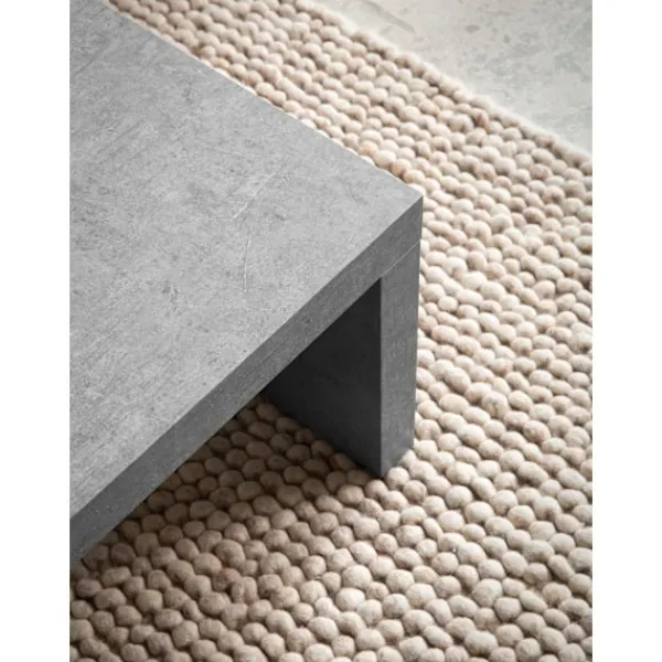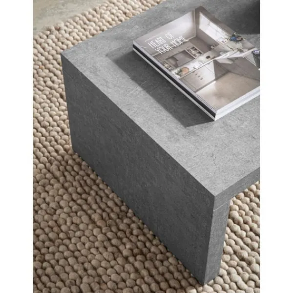 En stor bordsskiva i en matt betong ser perfekt ut för att lagra olika föremål. Har en subtil U-form design.