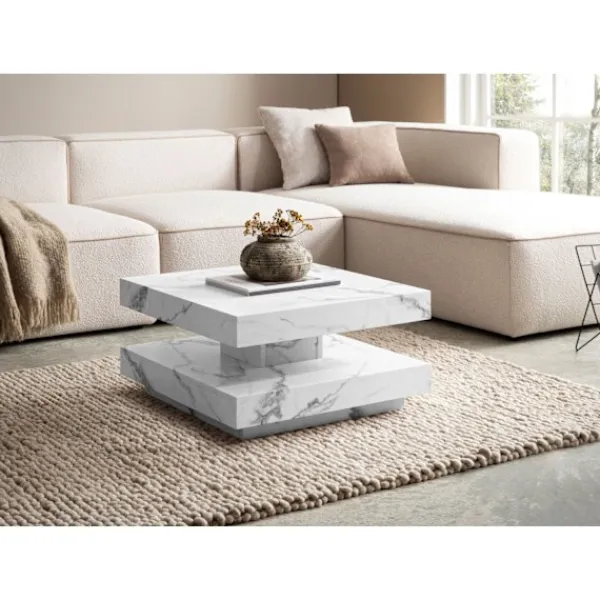 Lägg till en touch av sofistikering till ditt vardagsrum med detta snygga fyrkantiga soffbord med en modern design. Bordstoppen erbjuder gott om lagring för olika föremål, vilket gör det perfekt för fjärrkontroller, tidskrifter och mer.