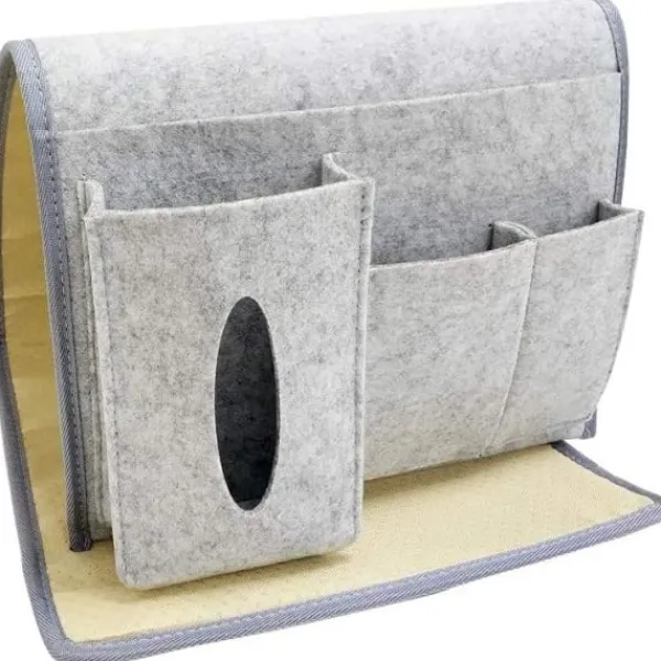 Grå sängficka, sängförvaringsficka, hängande väska för soffa, organizer för telefon, fjärrkontroll, dagbok, penna, tidning, glasögon