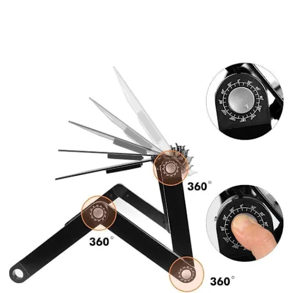 Smart design med justerbar 360 graders funktion – varje fällbart ben har 3 vred som kan justeras och låsas i vilken höjd och vinkel du behöver.