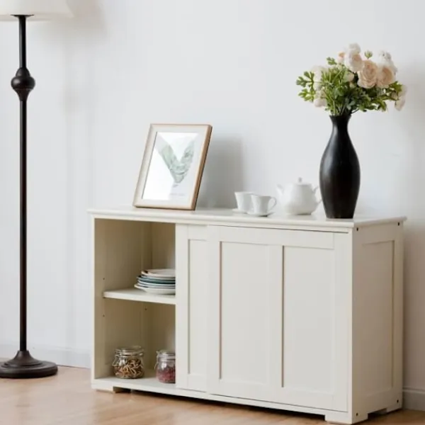 Denna högkvalitativa MDF köksskänk erbjuder stor förvaringskapacitet med sina praktiska skjutdörrar. Dess enkla och moderna utseende kommer att ge obegränsad charm till ditt moderna liv. Lätt att installera och rengöra, den är idealisk för flera områden i ditt hem.