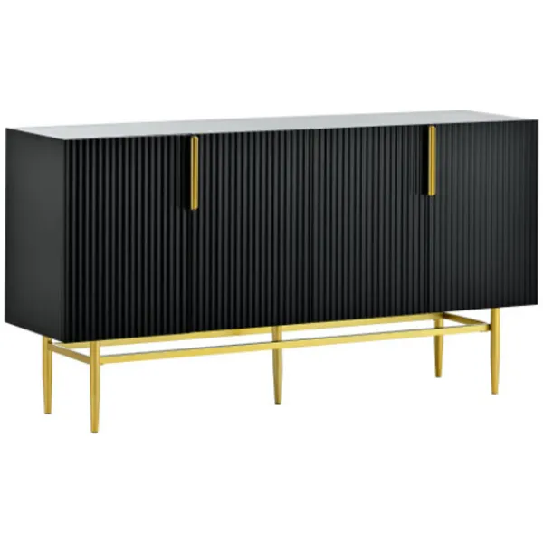 Enkelt och klassiskt: enkla linjer, konkav och konvex textur. Detta är en enkel och elegant skänk. Det finns två färger tillgängliga. Den svartvita skåpstommen med gyllene handtag och ben är harmonisk och perfekt utan att göra avkall på det klassiska. Du kan placera den i vardagsrummet, köket eller sovrummet och ge ditt hem en varm och romantisk atmosfär.