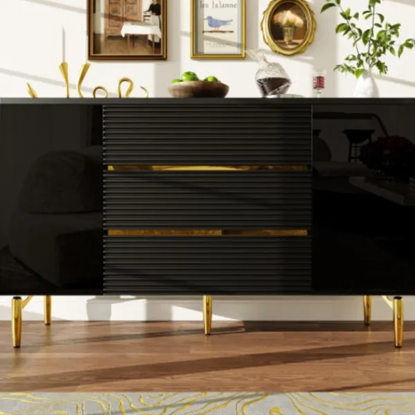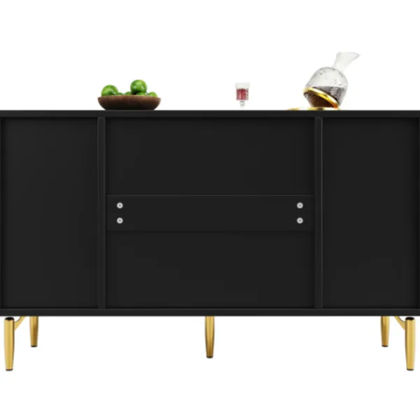 Enastående design: Skänken har en unik handhållen låddörrsdesign och den glänsande gulddetaljen ger dig en känsla av lyx som fungerar som en optisk dekoration, vilket gör skänken mer fashionabel och både vacker och praktisk.