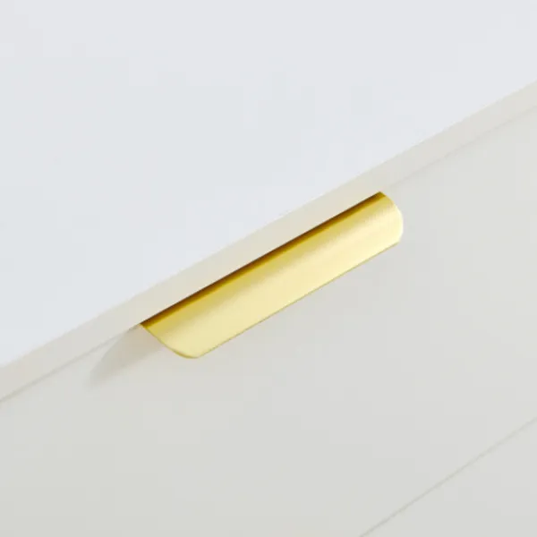 Praktisk hantering: De guldtonade handtagen i zinklegering möjliggör enkel användning av dörrar och lådor.