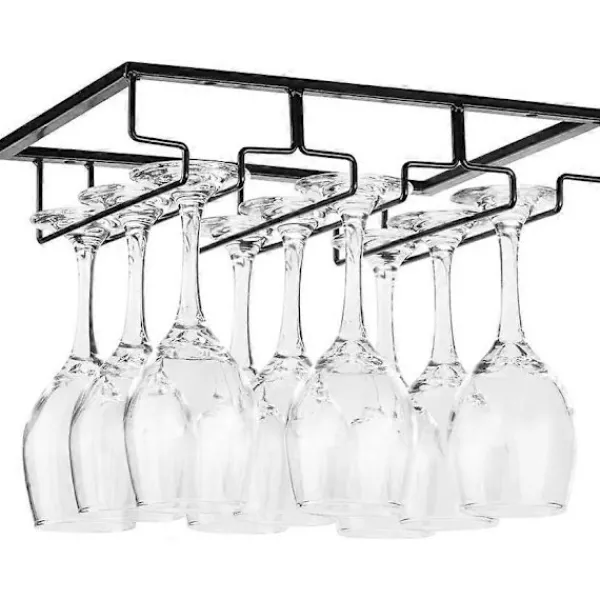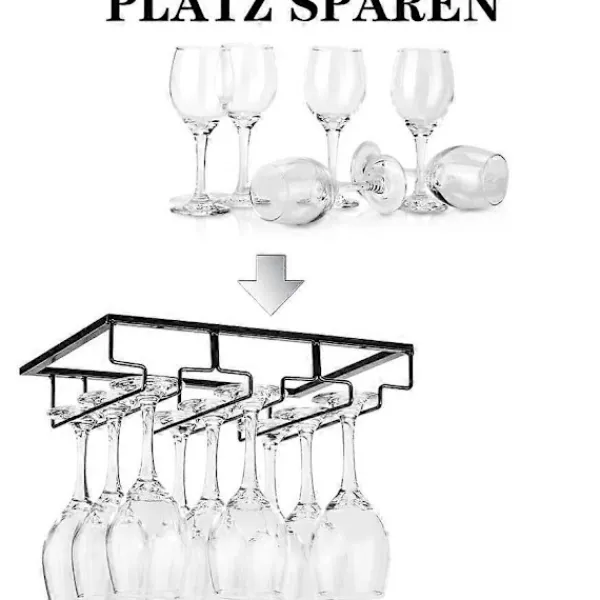 LÄTT ATT INSTALLERA: Levereras med monteringsdetaljer, ingen förborrning krävs, bara några minuter för att slutföra installationen. Organisera din stjälkglassamling, förvara dina vinglas under skåpet.