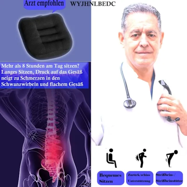 Ergonomisk förhöjningssäte för vuxna: Sitter bekvämt i bilen, på kontoret och hemma – Avlastning för rygg, höfter, svanskotan – Perfekt sittpuff för kontorsstolar och rullstolar. Lämplig för resenärer, gravida kvinnor, kontorsarbetare och andra.