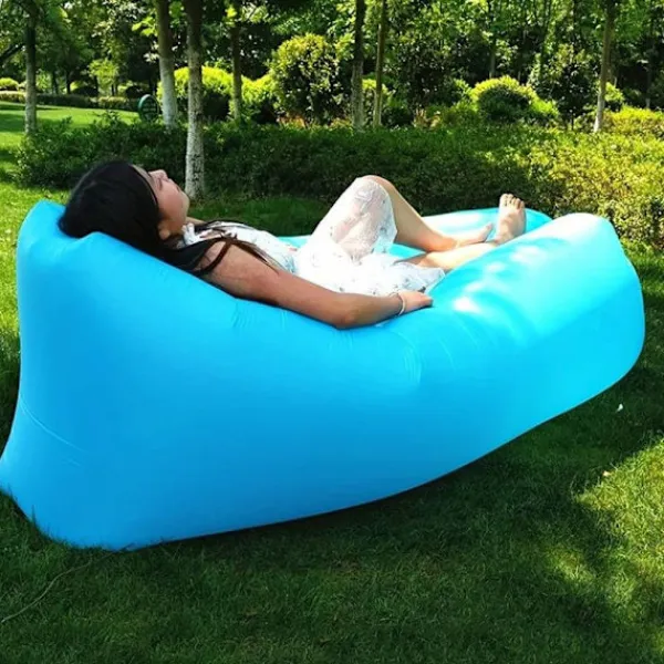 Air Bean är perfekt för många utomhusaktiviteter, såsom strandutflykter, resor, festivaler eller när du bara vill koppla av ute i trädgården. Den fylls enkelt och snabbt med luft; det bästa du kan göra är att springa med den i 20 sekunder, stänga den snabbt och vips; så har du en smart solstol.