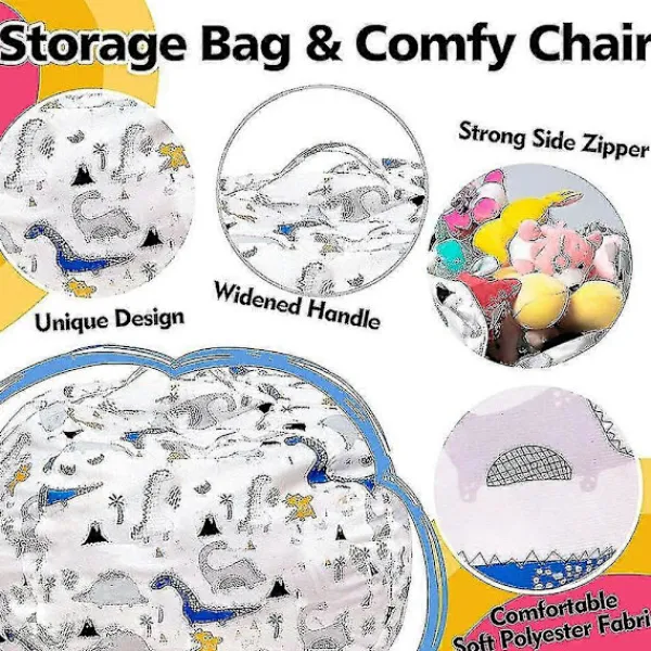 1. EXKLUSIV FÖRVARING AV UPPSTOPPADE DJUR Njut av ett städat hem med vår 2-i-1-organisatör för stora sittsäckar. Denna roliga förvaringsstol är ett utmärkt alternativ samtidigt som den ger ditt barn en mjuk plats att sitta medan de läser, tittar på program eller spelar spel.