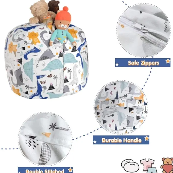 Sittsäckar>Barn Fylld Djur Förvaring Sittsäck med Bärhandtag Robust Bomulls Sittsäcksöverdrag Perfekt för Leksaker och Kläder Barnpresent (32″)