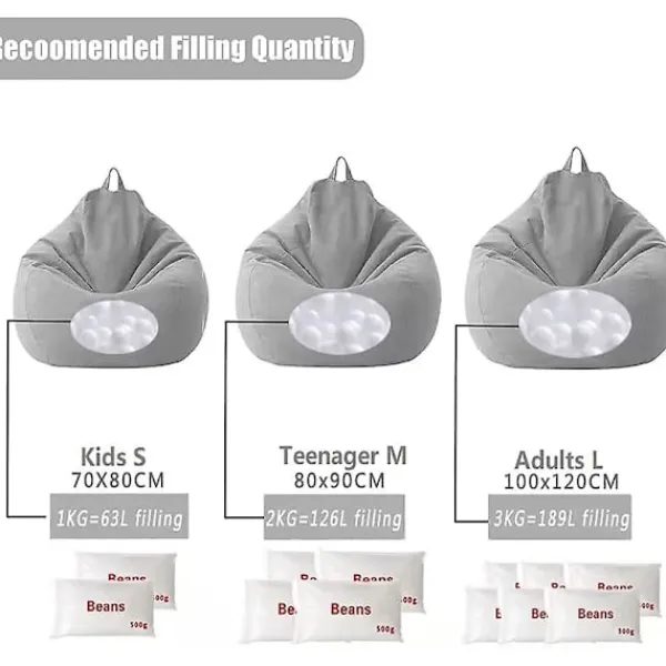 >>>DIY Fyllning: Överdraget till Bönpåse Fåtölj för Vuxna innehåller endast överdrag och ingen fyllning inuti. Du kan fylla på DIY enligt dina behov. Med sin stora kapacitet kan bönpåsefyllningen också användas som en förvaringsväska.