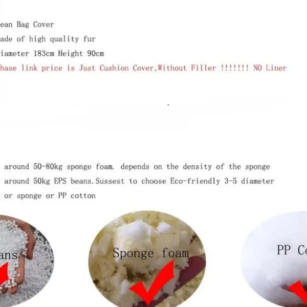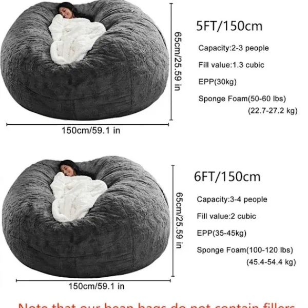 Bekvämt möbelöverdrag: Denna filt innehåller inga fyllmedel och kan fyllas med mjuka föremål som bönpåsar, minnesskum, filtar, svampar, kläder, täcken och kuddar för att organisera leksaker.