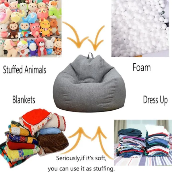 MULTI-SYFTE: Förvaringsväskan fungerar precis som en sittsäck och är ett bra alternativ till leksakshängmattor, nät, soptunnor.