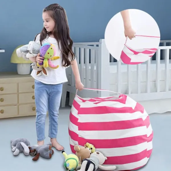【Stark kvalitet】Vår leksaksförvaringsväska finns i tre färger: rosa, grå och blå, är gjord av stark, hållbar, mjuk och bekväm canvas, och handtag, mycket lätt att bära