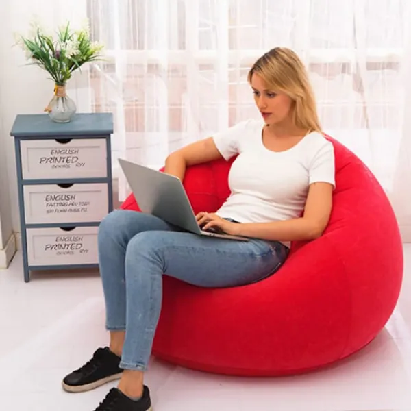 Uppblåsbar soffa för lata människor: Superbekväm för att sitta, ta en tupplur och koppla av. Den kan förvaras när den inte används, vilket gör den lätt att förvara och sparar utrymme. Du kan enkelt flytta denna lätta skönhetsstol från rum till rum för att anpassa den efter dina behov.