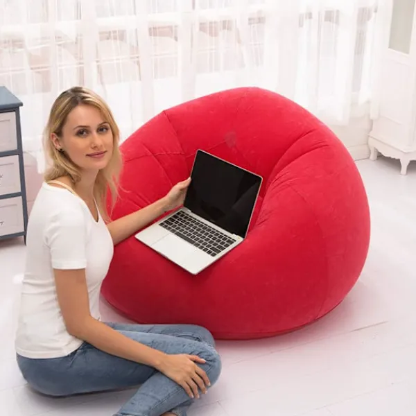 Bekväm sittsäck: Tillverkad av miljövänlig flockad PVC, mjuk, bekväm, miljövänlig, hudvänlig, andningsbar, slitstark, fläckbeständig och blekningsbeständig.