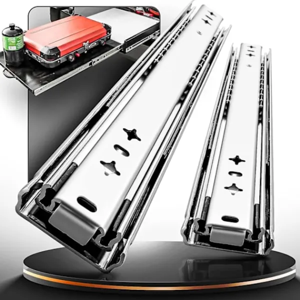 【Massiva stålkulor för industriell användning för bättre viktbärande】 Skenskenan är utformad med två uppsättningar kullager inuti, alla gjorda av massiva stålkulor. Förutom att bibehålla skenans rörlighet ökar den effektivt skenans lastkapacitet. Lådor med full utdragning ger tillgång till hela utrymmet, och lådorna kan dras ut helt för enkel förvaring.