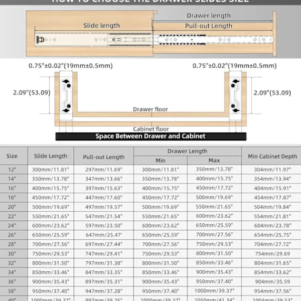 【3-faldig full utdragning avtagbar】 Den tredubbla utdragningen gör att skenorna kan dras ut helt, vilket gör att lådan kan dras ut helt för enkel åtkomst till hela förvaringsutrymmet i lådan. Genom att trycka på låshandtaget och fortsätta dra kan de inre skenorna tas bort för enkel installation och rengöring.