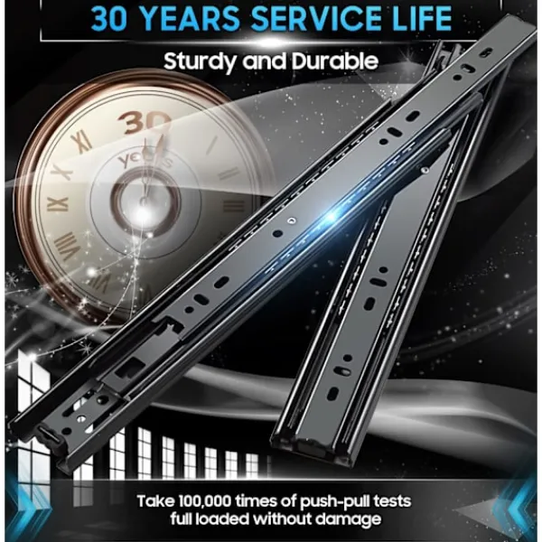 Användningsområde: Denna skena är lämplig för alla typer av hushållslådor och kontorsmöbler. Den kan användas till garderobslådor, tangentbordslådor, skåpslådor, lådor av trä eller stål, verktygslådor och andra lådor med stora krav på bärförmåga.