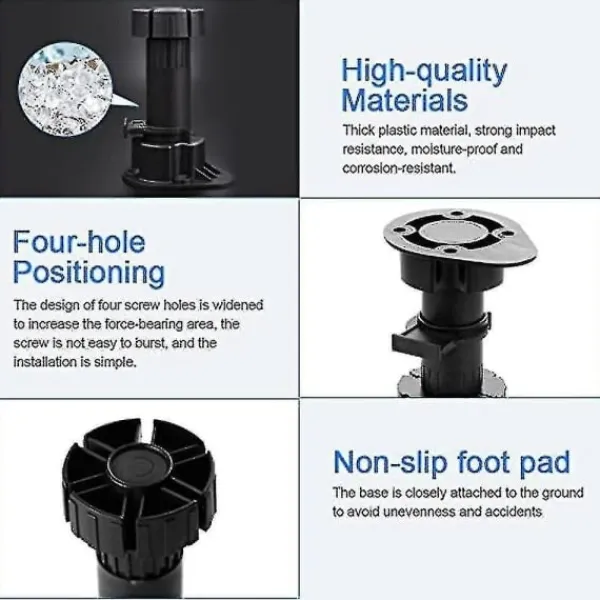 [Tjockt Plastmaterial] – De justerbara möbelfötterna är gjorda av högkvalitativ plast, så de har stark slagtålighet, robusthet och slitstyrka, samt dimensionsstabilitet.