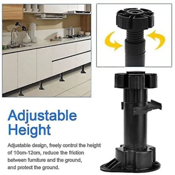 De är lämpliga för allt som behövs i sovrummet, köket, badrummet, såsom sängar, skåp, soffor, skåp, TV-skåp, , vitrinskåp, diskhoar och andra möbler. Material: plast Färg: svart Paketets innehåll: 20 * Justerbara fötter 10 * Uttagsklämma Endast ovanstående paketinnehåll, andra ingår inte. Obs: